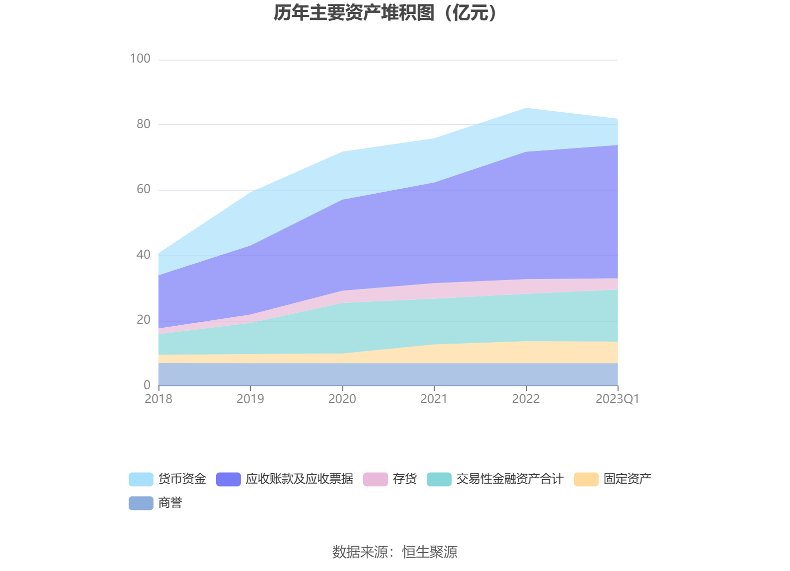 资产重大变化方面,截至2023年一季度末,公司货币资金较上年末减少39.88%,占公司总资产比重下降5.16个百分点;应收账款较上年末增加3.91%,占公司总资产比重上升2.40个百分点;存货较上年末减少23.72%,占公司总资产比重下降0.99个百分点;无形资产较上年末增加20.33%,占公司总资产比重上升0.39个百分点。