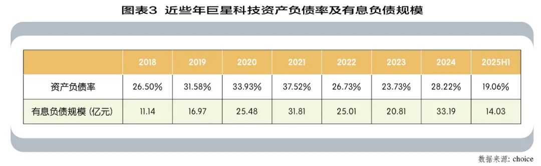 自2021年以来, 巨星科技 的资产负债率呈现明显的下降趋势,2024年资产负债率出现攀升也主要是因为已贴现未到期的银行承兑汇票增加导致短期借款增加。2025年上半年期间,公司持续归还短期借款,优化其负债结构。截至上半年,公司资产负债率已经降至19.06%,有息负债①规模同步降至14.03亿元,低负债结构的灵活性,有助于更好地应对经营性风险的发生。(图表3)