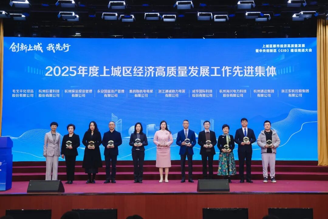 会上,集中颁发了2025年度上城区经济高质量发展工作先进集体荣誉奖项。巨星科技荣获2025年度上城区经济高质量发展工作先进集体。