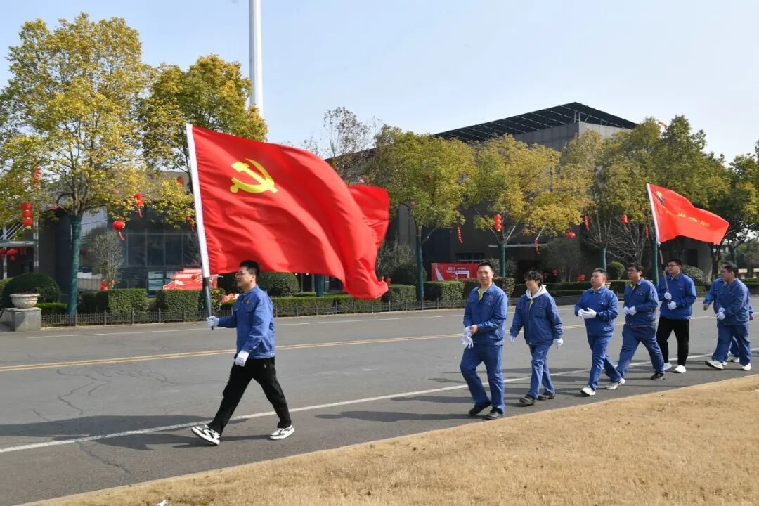 工业路沿线,一面面党旗迎风飘扬。各支部党员带头、团员跟进、志愿者配合,大家分工协作、干劲十足,捡拾装车、清运处置有条不紊。安环部现场讲解交通避让原则,确保运输路线安全顺畅;第四党支部志愿服务队提前到位,分发手套、运送物资、巡逻保障,全程为活动保驾护航。