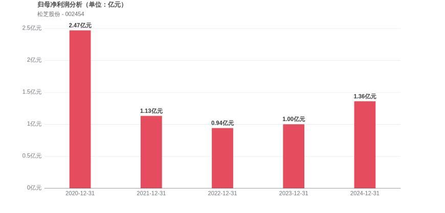 利润角度分析,2020年松芝股份实现归母净利润2.47亿元,2024年1.36亿元。公司净利润水平出现明显下滑,盈利能力有所减弱。