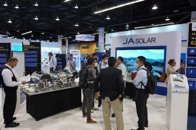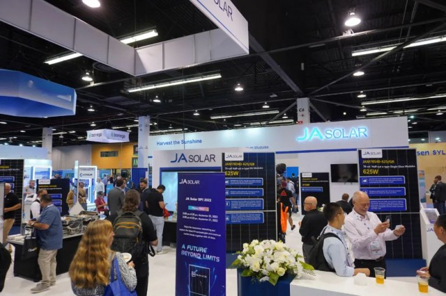 9月20日,为期3天的2022年美国国际太阳能展(Solar Power International2022)在阿纳海姆会展中心盛大开幕。晶澳科技携多款高效产品亮相2448展位,参观人员络绎不绝。