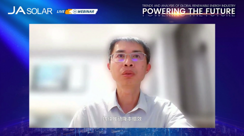 晶澳科技副总裁祝道诚作开幕致辞。他指出:当前,许多国家正在大力推动节能减排,能源转型已成为全球趋势。2023年光伏市场将面临更多的挑战和机遇。