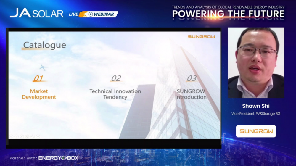 在储能逆变器环节,SUNGROW PV & Storage的副总裁史晓峰分享了“光伏技术创新趋势解码:储能和逆变器”报告。在市场发展方面,他介绍了全球光伏系统安装预测以及全球储能系统安装预测。在2023年储能系统安装估计中,他表示全球新增容量将达到102GWh,其中中国为42GWh,美国为25GWh。在技术创新方面,他解释了领先的1+X模块化逆变器。史晓峰表示,储能系统在能源转型中发挥重要作用,在各种场景中不可或缺。