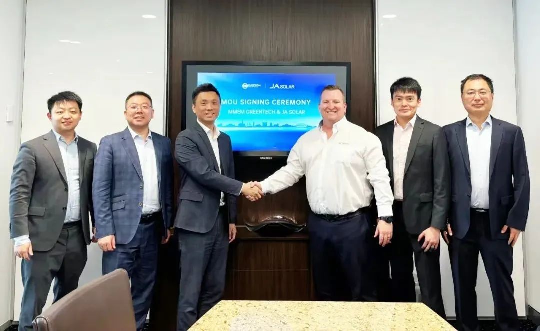 日前,晶澳科技与MMEM Greentech签订分销伙伴关系MOU协议。MMEM Greentech供应商关系总经理Sam Page与晶澳科技助理总裁陈永钦等出席签约仪式。
