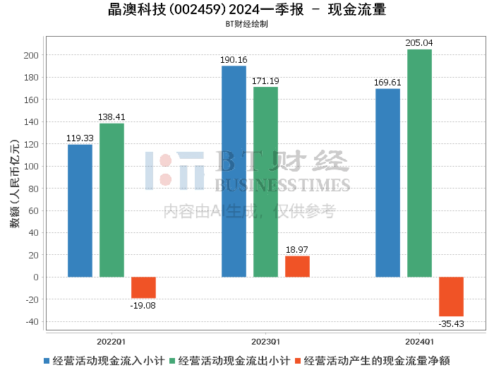 总体而言,晶澳科技在2024年第一季度面临较大的财务压力。尽管资产总额有所增加,但负债水平的上升和盈利能力的下降是需要关注的重点。经营活动现金流的负增长也反映出公司在资金管理方面的挑战。未来,公司需要在提升盈利能力、优化成本控制和加强现金流管理方面采取有效措施,以应对市场竞争和行业波动带来的不确定性。
