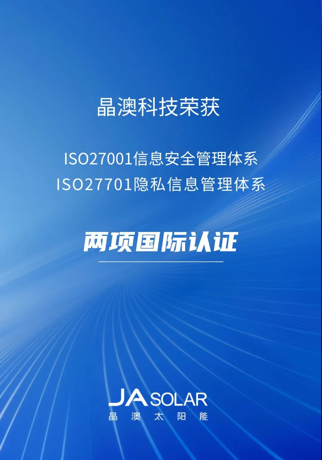 近日,晶澳太阳能科技股份有限公司及下属多个子公司获得ISO27001信息安全管理体系和ISO27701隐私信息管理体系认证,这两项国际认证标志着晶澳在信息安全和隐私保护方面达到了全球领先水平。