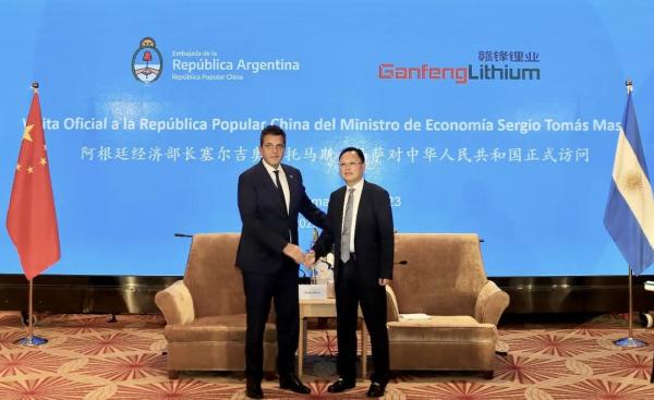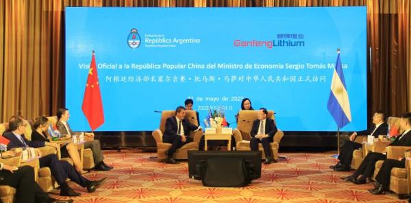 北京时间2023年5月31日,阿根廷经济部长塞尔吉奥·托马斯·马萨(Sergio T. Massa)率代表团于上海会见国内锂矿龙头赣锋锂业董事长李良彬、总裁王晓申等。双方就赣锋阿根廷项目建设情况、人民币结算、基础设施建设等议题展开深入讨论。