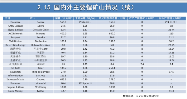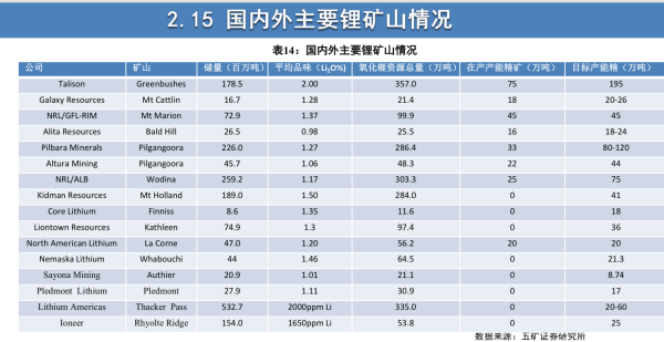 国内锂辉石矿方面,四川甘孜州及阿坝地区有较大锂辉石矿。湖南平江、江西宁都、新疆可可托海有少量锂辉石矿。锂云母矿主要在中国的宜春地区,澳大利亚的锂辉石中伴有少量的锂云母矿,非洲的纳米比亚、尼日利亚、刚果以及西班牙西部等地也有锂云母储量,但储量不大。