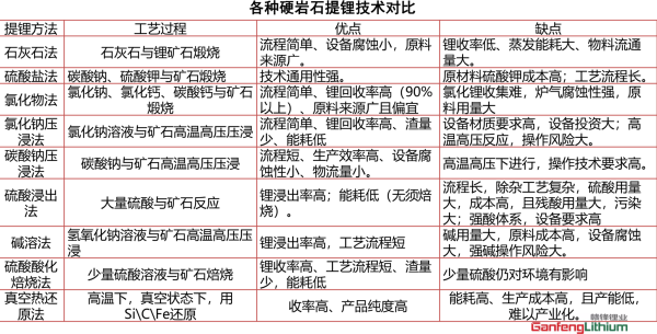 除此之外,应用于锂矿石提锂的方法还有纯碱压浸法、硫酸浸出法等。