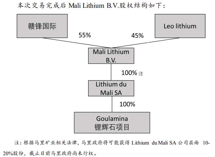 赣锋国际增资不超过1.38亿美元,将用于Goulamina 项目后续的项目建设和资本支出,增资完成后赣锋国际将持有MaliLithium B.V. 55%股权,从而间接持有Goulamina项目55%权益。本次增资将替换原投资方案。