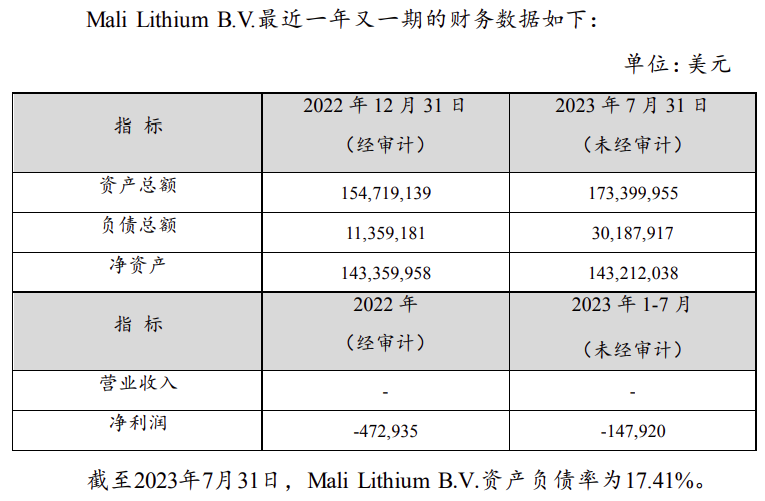 据悉,Mali Lithium B.V.是由Leo Lithium和赣锋国际共同出资2022年3月于荷兰注册成立,该公司注册资本为1000 美元,主营业务是矿产资源投资与贸易。