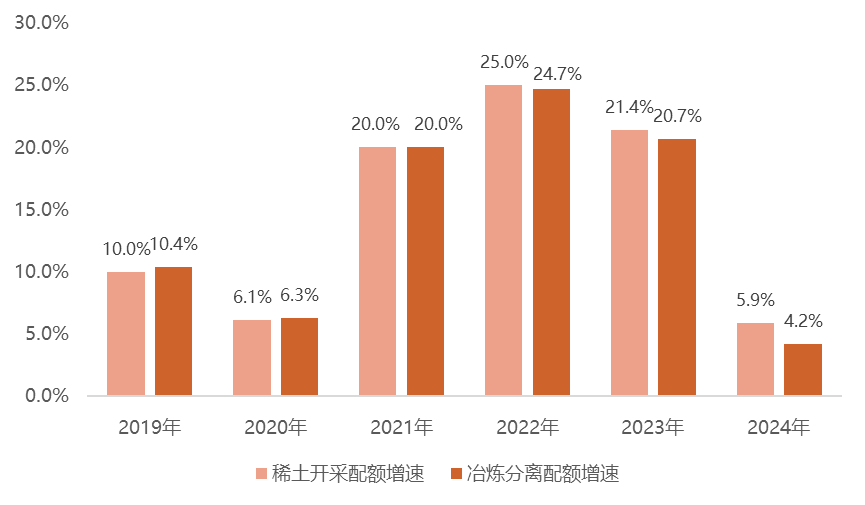 稀土:地缘冲突强化战略金属定位,配额增速放缓,新兴行业需求强化!我国是全球最大的稀土资源国、具备稀土全产业链优势,海外稀土消费依赖于从我国进口,短期内难以被替代。在大国博弈的背景下,稀土战略地位进一步提升,稀土行业相关上市公司估值或得到重估。供给方面,配额增速放缓,2024年稀土开采和冶炼分离的配额增速重回个位数,并低于消费增速,行业周期见底,逐步走向平衡,基本面进一步改善。需求方面,新能源汽车、人形机器人等新兴领域重塑未来稀土增长动能,据 中信建投 统计,未来三年需求增速CAGR超过13%。