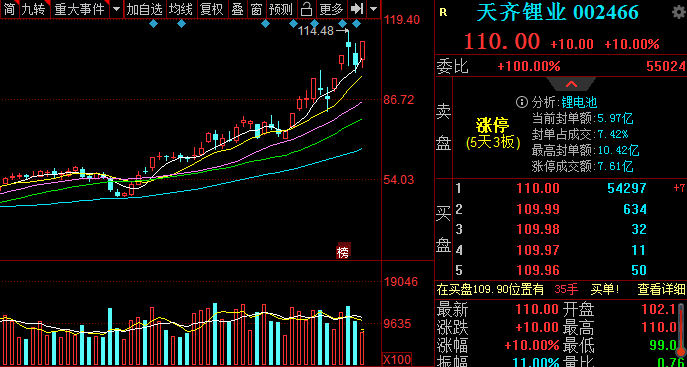 8月4日天齐锂业也随着大盘的反弹而涨停。