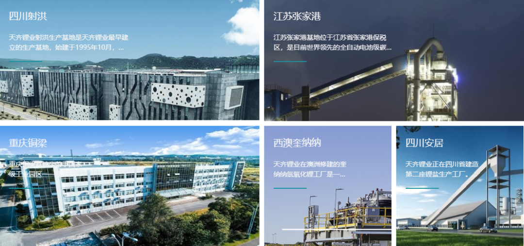 公开资料显示,天齐锂业,来自四川遂宁谢洪,是以锂为核心的新能源材料企业,业务包括锂化合物及衍生物生产与锂精矿开采及生产。在国内的四川、江苏、重庆和国外的澳大利亚等地设立生产、资源基地或分支机构。