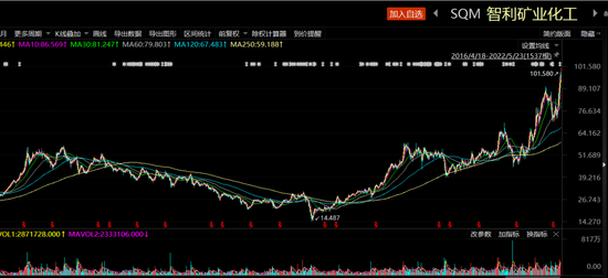 天齐锂业(002466.SZ)调高了今年半年报的业绩预期,前期收购海外矿业的收获期来了?!根据天齐旗下重要子公司SQM(智利化工矿业公司)披露的2022年第一季度业绩报告显示,公司实现净利润7.96亿美元,折算人民币约53.76亿元。此业绩一出震惊市场,超出天齐锂业一季报的预期。