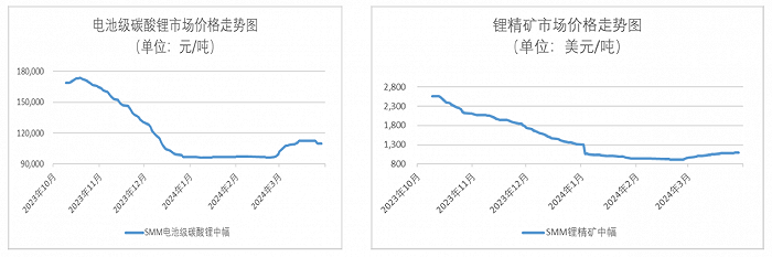 电池级碳酸锂、锂精矿一季度价格双双大跌