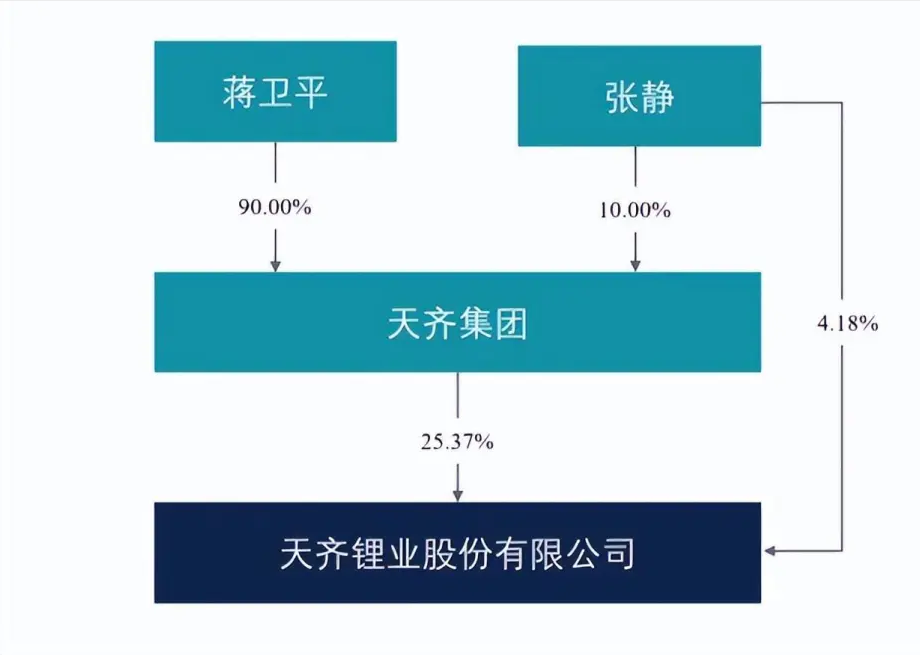 在股权继承方面,天齐锂业2022年年报显示,蒋安琪未持有天齐集团的股份,天齐集团100%股权分别由其父蒋卫平和其母张静二人持有。穿透后,二人实际控制天齐锂业29.55%的股权。截止本次公告日,蒋安琪仍未持有公司股份。