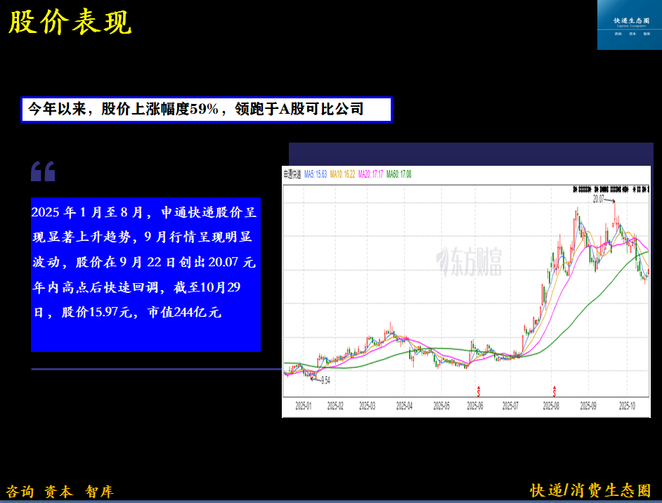 年初至今,申通快递上涨59%,公司最新市值244亿。根据市值数据,申通快递在加盟快递中排名第四。