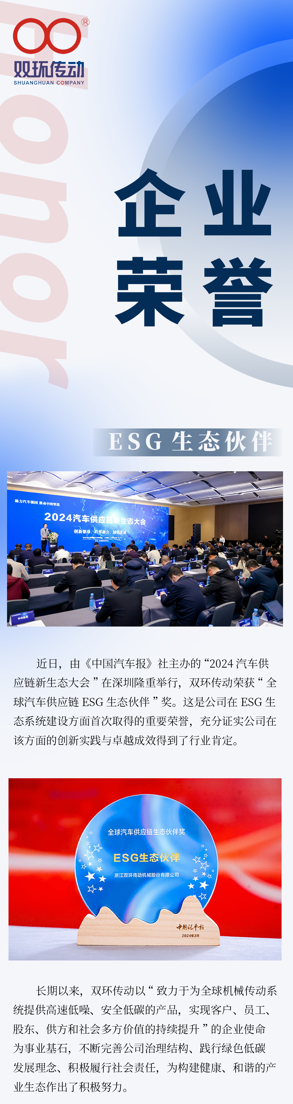 喜讯!双环传动荣获“全球汽车供应链ESG生态伙伴”奖!