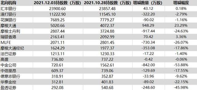 在10月28日立讯精密公布三季报至12月3日的27个交易日中,陆股通资金持股数由6.51亿股下降至6.20亿股,累计减少3100万股。其中,摩根士丹利、美林、中金公司都是减持大户,分别减持917.44万股、730.34万股和842万股。而在增持方面,摩根大通增持最多,期间增持了948.29万股。至于第一大持股机构汇丰银行,则持股比较稳定,只有小幅加仓。