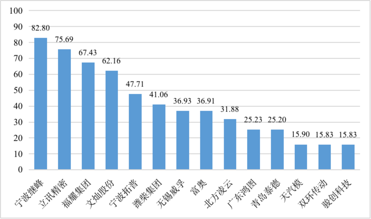 图5 “汽车零部件”赛道企业国际化水平(100分制)