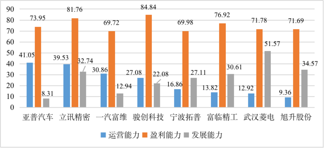 图4 “汽车零部件”赛道企业营运盈利及发展能力(节选)(100分制)