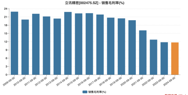 拉长时间线看,公司毛利率呈逐年递减的趋势,到了今年前三季度,其毛利率创2010年上市以来同期新低。