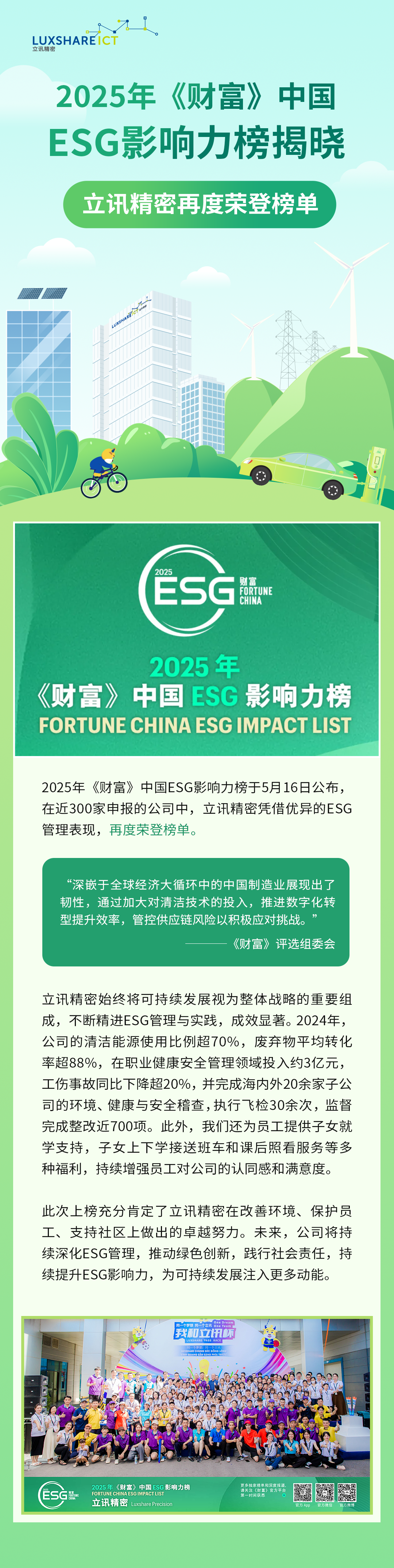立讯精密再度荣登《财富》中国ESG影响力榜单