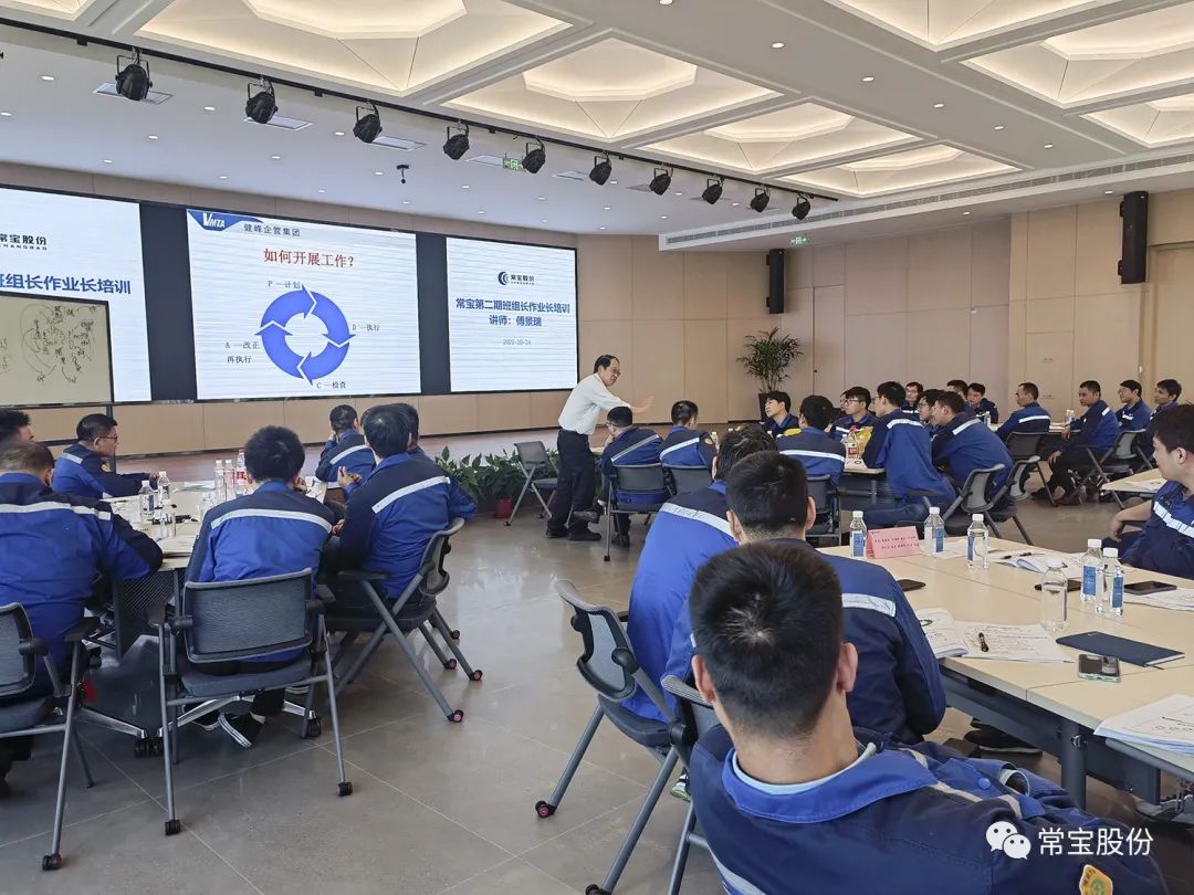培训中,指导老师结合班组长的角色、职责及做法,班组长的沟通技巧,基层干部现场实务管理,精益改善及TPM推进等内容作了精彩讲授,授课环节还增加了小组活动,通过小组团队讨论帮助学员加深理解。培训结束后,公司将通过常宝OA系统对员工进行在线考试进行巩固,发放结业证书,后续通过”531”落地改进行动计划促进培训效果转化。