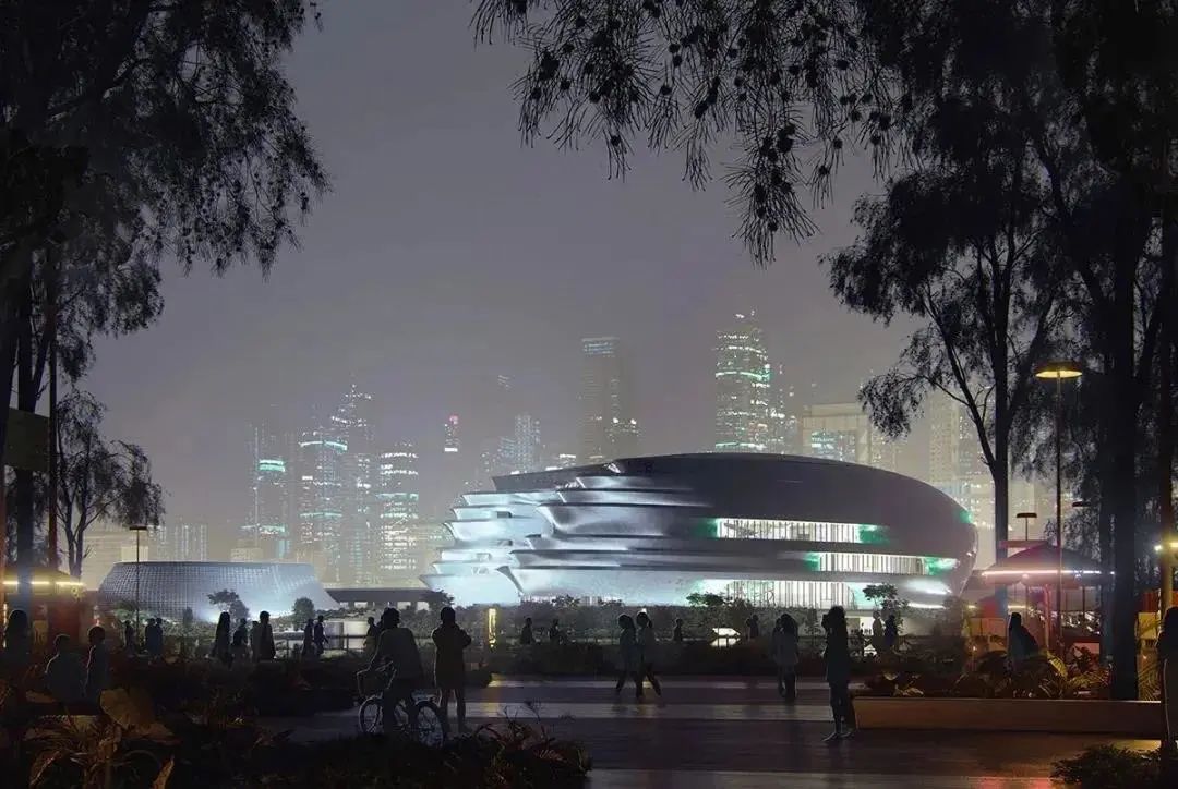 作为深圳市“新时代十大文化设施”之一,深圳科技馆(新馆)位于光明区新湖街道,紧邻楼村水北岸。在“一心两区、绿环萦绕”光明科学城的空间格局中,它未来将与图书馆、青少年宫共同构建光明科学城科普教育、科教创新的文化交流核心平台,形成科技、创新与教育互相渗透的文化氛围。