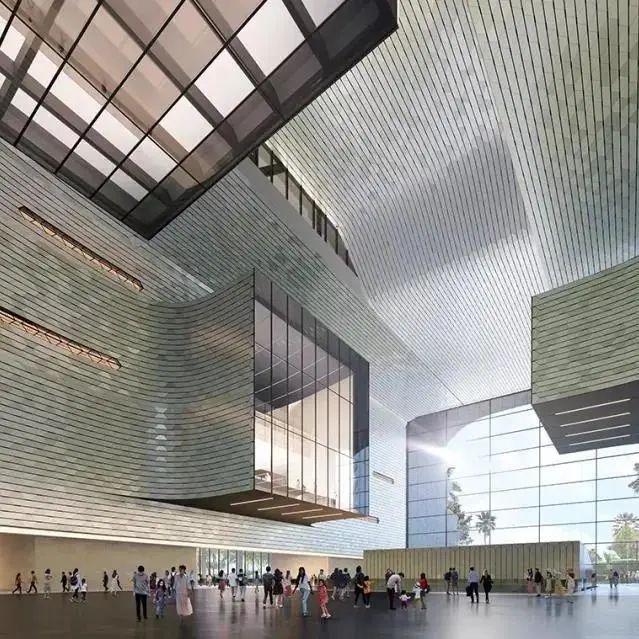 基于“优美和谐”的理念,深圳科技馆(新馆)优雅的外表犹如一艘“未来主义”的船只。通过精心策划的大型玻璃开口,可在展示充满活力的主题展览的同时,探索并增强光明区美丽的自然景观与高科技教育、展览项目之间的联系,将两者通过景观中的活动空间相连。