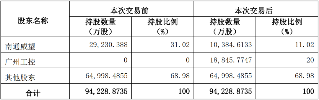 本次交易前后,南通威望与广州工控分别持有润邦股份的变动情况如下: