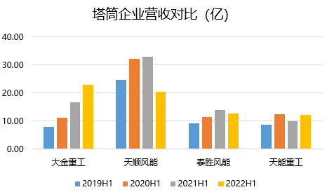 见智研究(公众号:见智研究Pro)对比了4家老牌塔筒企业半年报盈利水平,大金重工今年上半年营收情况算是最好的,利润方面受制于行业因素,既过了抢装潮,又面临上半年原材料钢材价格高企,所以业内企业利润阶段性下滑,其实这点也在市场预期范围内。