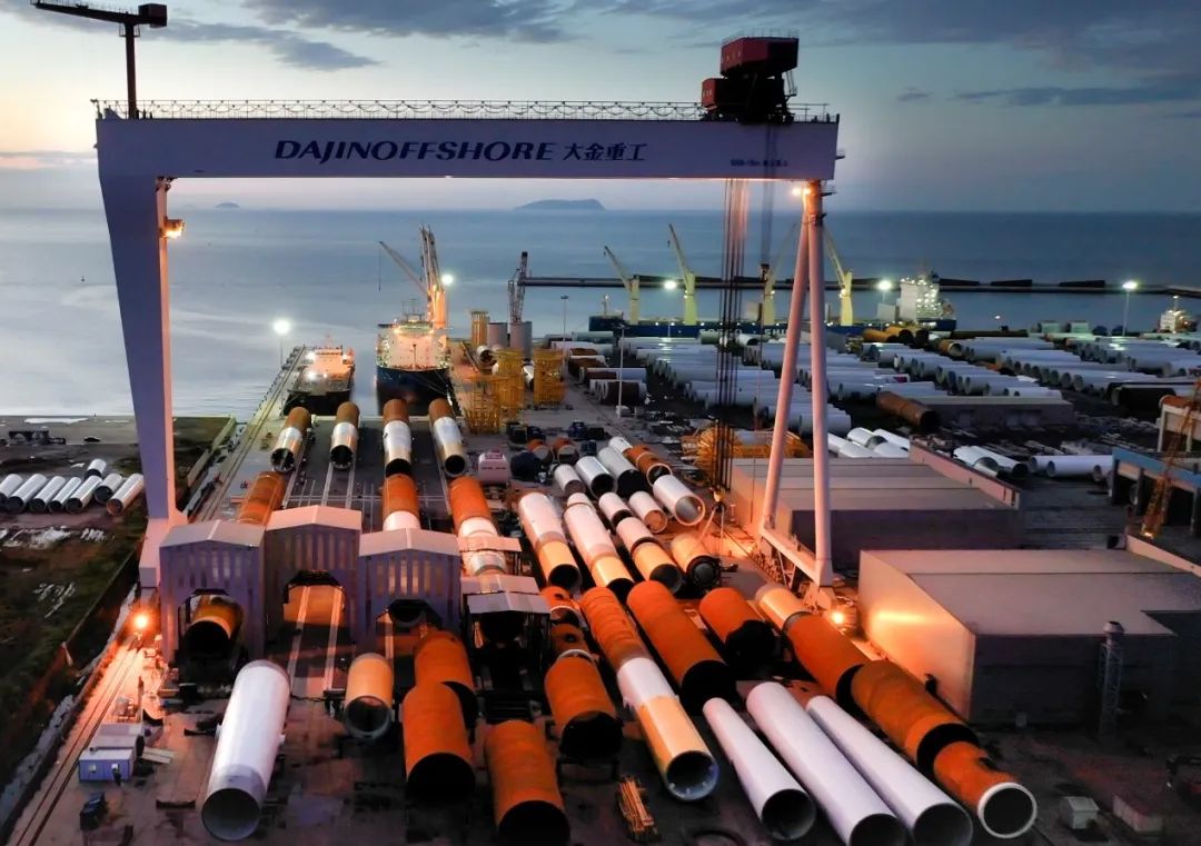 在出口产品迭代上,大金已然实现了从陆上塔筒到海上塔筒及桩基产品的升级,上半年成功中标欧洲多个海塔及XXL超大型单桩项目。鉴于此,证明大金重工已经成为全球首家被业内主流客户认可具备完整海风大型钢结构部件一体化供应能力的企业。