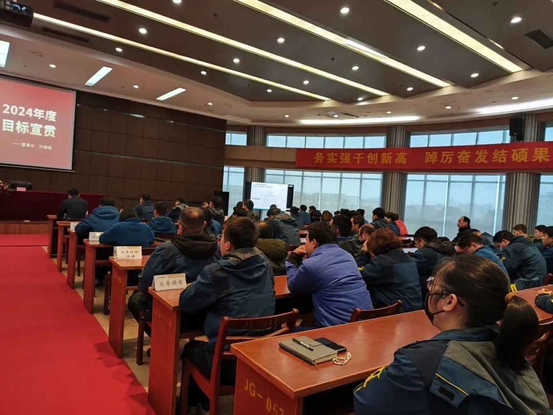 大会首先由执行总裁金佳彦做2023年工作总结及2024年工作展望,金总在报告中分析国内外行业环境及经营情况、总结工作亮点及不足,并对运营中心各厂区运营目标和工作任务作出指示。