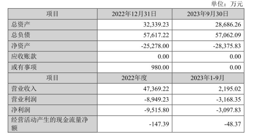 翻阅山东墨龙近年财报风口财经发现,公司自2019年至2022年已连续四年净利润出现亏损,分别为-1.96亿元、-2.67亿元、-3.70亿元、-3.61亿元,2023年前三季度,山东墨龙基本面几乎已千疮百孔,净利润亏损2.49亿元,累积亏损达14.43亿元,资产负债率超过80%。