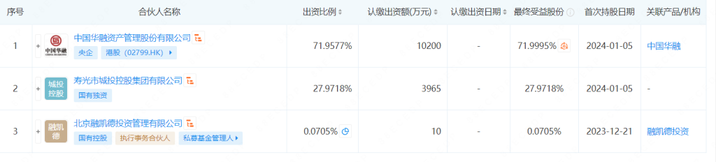 芜湖智赢项目投资合伙企业(有限合伙)成立尚未满月,实际控制人为国务院直接管理的中国中信集团有限公司。其中,北京融凯德投资管理有限公司作为普通合伙人持有0.07%份额,中国华融资产管理股份有限公司作为有限合伙人持有71.96%份额。