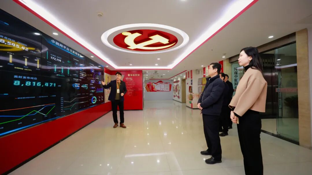 在姚红超的陪同下,韩高贵董事长一行首先深入 中钢网 运营一线。从记录发展历程与企业文化的展厅,到高效运转、数据驱动的运营中心,再到充满活力的新媒体直播基地,来访嘉宾直观感受到了 中钢网 作为钢铁产业互联网领军企业的创新氛围与科技实力。每一个场景,都生动诠释着 中钢网 如何通过技术赋能与模式创新,重塑钢铁行业的交易与服务生态。