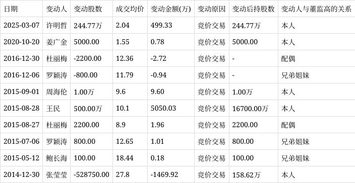 深交所公开信息显示,3月7日,利源股份董事许明哲在竞价交易公司股票,增持股数244.77万股,成交均价2.04元,变动金额499.33万元,变动后持股数为244.77万股。