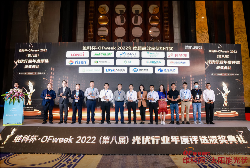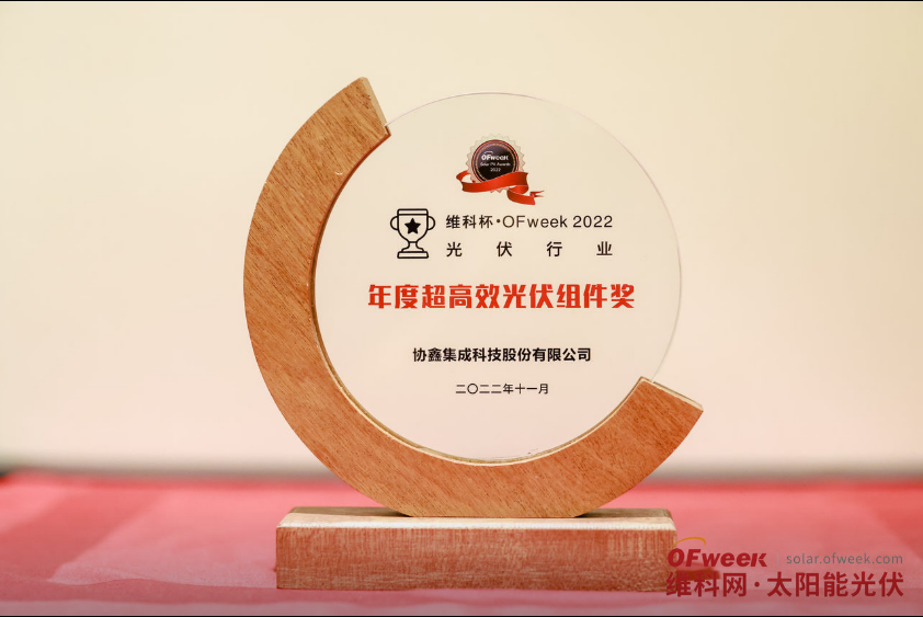 2022年11月16日,由高科技行业门户OFweek维科网主办,维科网光伏承办的“OFweek 2022(第十三届)太阳能光伏产业大会暨光伏行业年度颁奖典礼”在深圳成功举办。协鑫集成荣获“OFweek2022年超高效光伏组件奖”以及“2022年度卓越EPC企业”奖项。