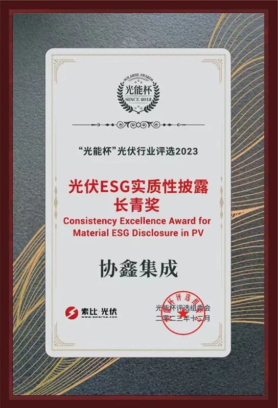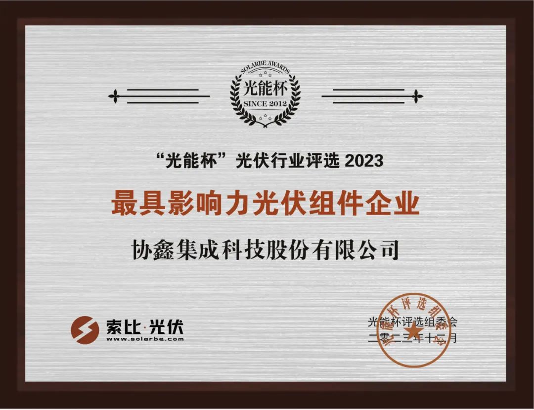 “光能杯”首届盛典于2012年正式启动,该奖项已成为行业内极具专业性、权威性的评选,有超300余家光伏企业参与报名评选,在同期举行的第十一届“光能杯”光伏行业颁奖盛典和第5届“碳索”企业家跨年分享会上,协鑫集成分别荣获“2023年度最具影响力光伏组件企业”奖和光伏ESG实质性披露“长青”奖。