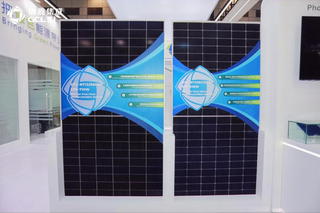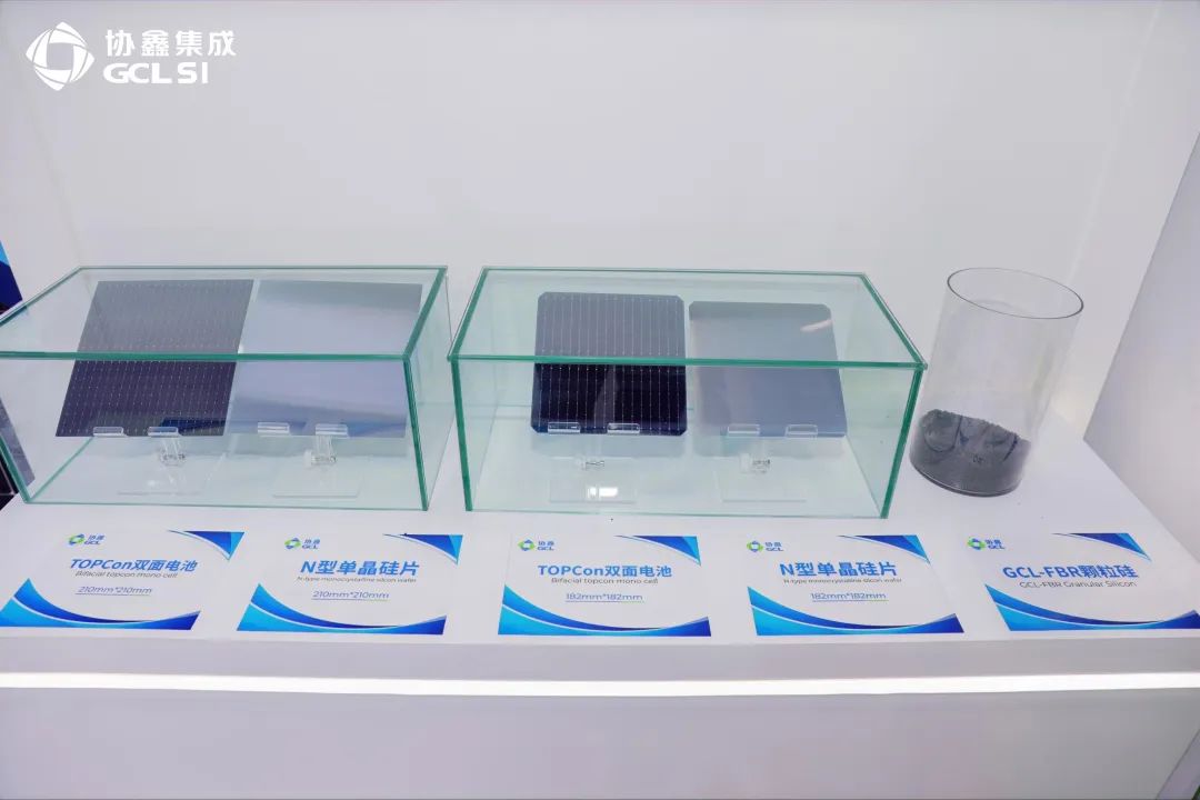 同时还展出了协鑫科技的颗粒硅产品及N型单晶硅片,其中FBR颗粒硅与棒状硅相比,具有单位投资低、运营成本低、碳排放低等优势,其低碳、高效的品质是N型产业链高效发展的关键。协鑫硅能源绿色低碳产业链完整展出,呈现“材料端-产品端”一体化绿色解决方案和低碳理念。