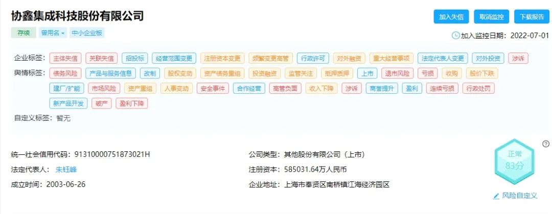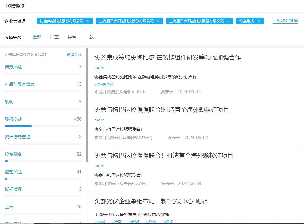 另外,凭借AI风险管理系统风险雷达观察AI对协鑫集成的风险评估,部分截图如下: