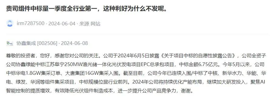 虽然光伏上市公司股价下行是整体趋势,但协鑫集成跌幅较为明显,这其中,市场除了对光伏行业内卷的担忧,投资者还在担心什么呢?