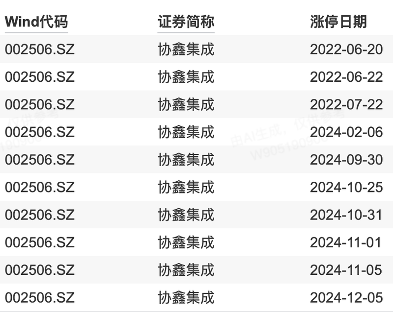 协鑫集成上一次涨停是在2024年12月5日。此前的2024年10月至12月,协鑫集成也曾多次涨停,当时光伏板块整体走强,同时协鑫集成一笔48.42亿元的定增在当年11月获得证监会通过,推动股价上涨。