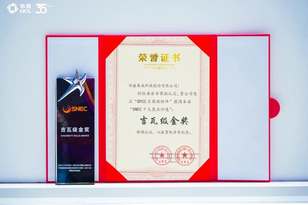 6月11日至6月13日,第十八届上海SNEC国际光伏储能展(以下简称“SNEC展”)在上海国家会展中心隆重举办。在6月13日举行的SNEC展“十大亮点评选及颁奖典礼”中,协鑫集成(002506.SZ)凭借GPC2.0高效组件产品的卓越性能和创新技术,斩获“吉瓦级金奖”殊荣。