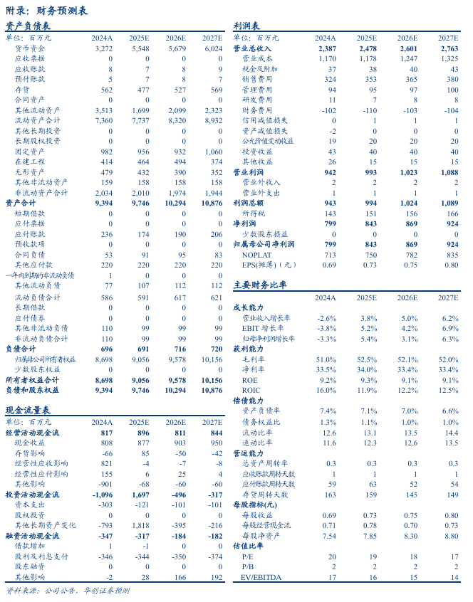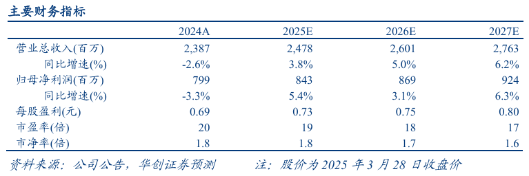 Q4经营压力显现,全年分红比例提升,维持“推荐”评级。公司品牌地位稳固、商业模式长青、现金充沛报表优异,24年股利支付率提升至60%,分红率接近3%,值得以可持续经营视角守住价值,当下经营积极求变、若是后续调整得当,报表具备提速潜力,年内紧盯改革效果、销量拐点。基于此次年报,我们维持25-26年EPS预测0.73/0.75元,并引入27年EPS预测为0.80元,对应P/E估值19/18/17倍,维持目标价15.8元,对应25年约22倍PE,维持“推荐”评级。