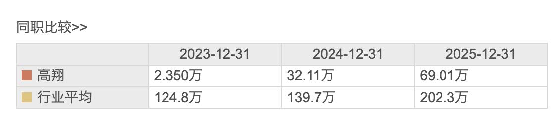 东方财富数据显示,2025年,高翔薪酬为69.01万元,同比增长114.92%。