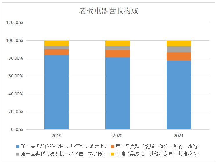随着2022年3月30日推出“老板”集成灶、冰箱产品,老板电器的品类布局更为完善,形成了囊括了烹饪前、中、后场景,这些产品也组合成为场景智能和一整套烹饪解决方案。